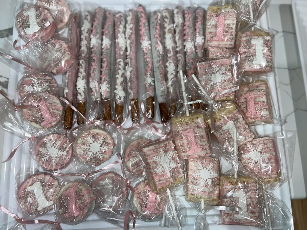 Beautifully made chocolate dipped rice krispie treats for birthday party favors. Came in on time, packaged perfectly just like the pictures :) will order from shop again!